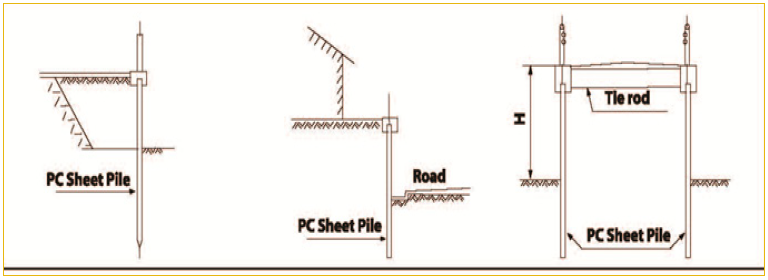 Sheet pile datar dari bahan prategang dan pratarik ( sheet pile ) adalah material yang populer saat ini karena sistem produksinya relatif mudah seperti pada tiang pancang kotak. Komponen ini banyak dipakai untuk normalisasi sungai dan penahan galian.